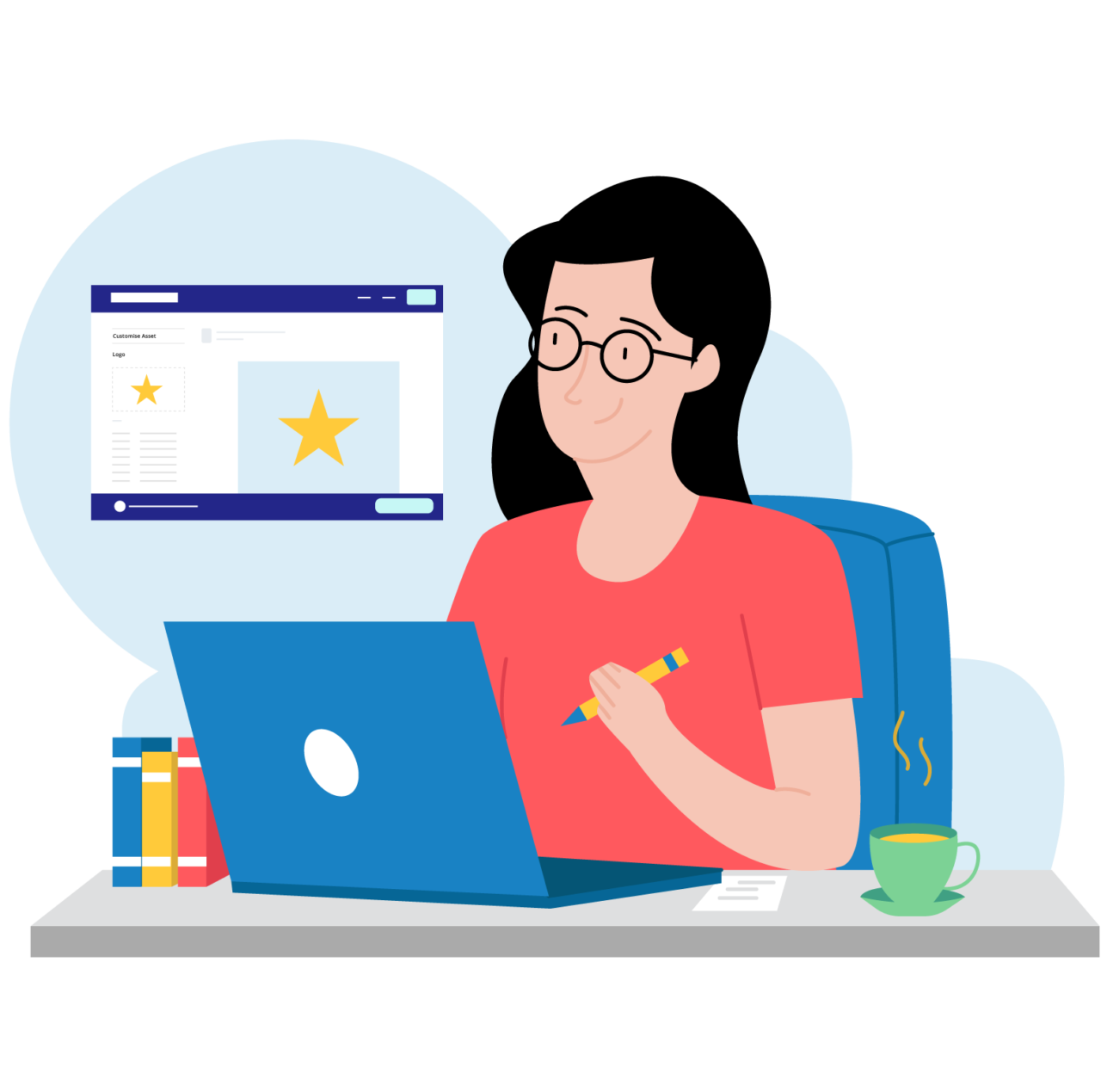 Some assets can be customised with your own image or logo. To see all customisable assets, use the filter option. Click on an asset to access the drag-and-drop feature, which lets you add and crop your image in real-time.